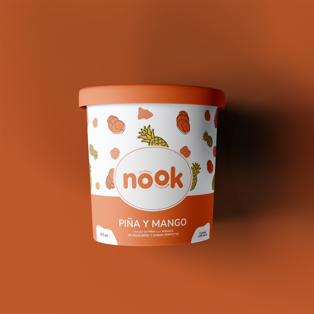 Pote de 475 ml con Helado de Piña y Mango, con fruta 100% natural.